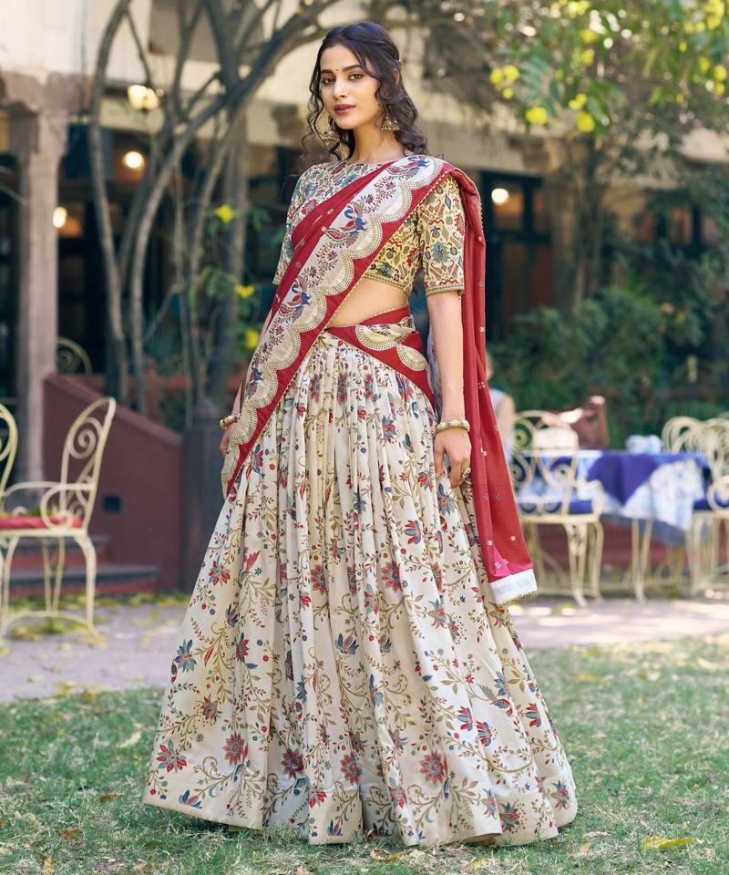 Shine bright in tasar silk foil printed lehenga choli