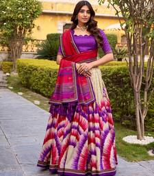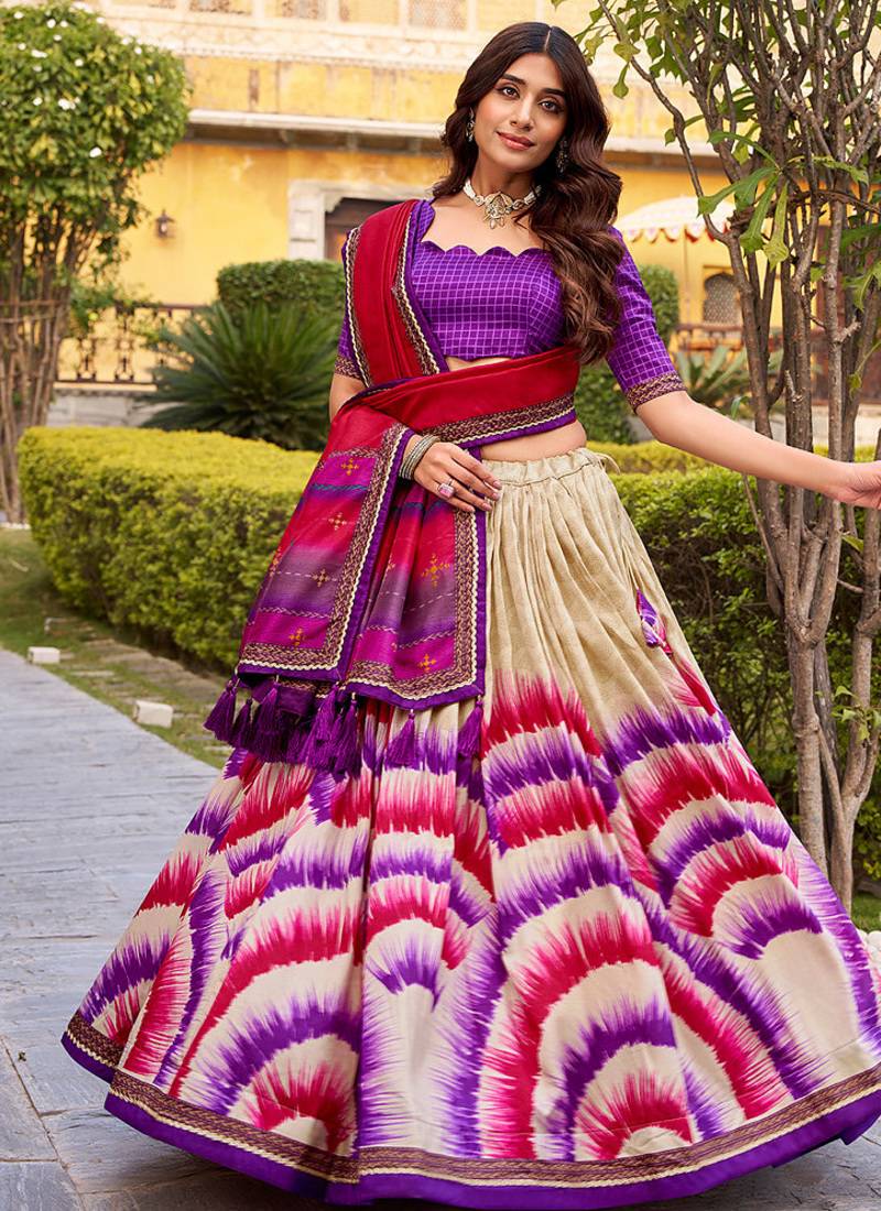 Tasar silk tie-dye print chaniya choli with lace touch-up