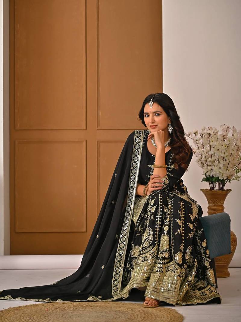 | Product Name | Black Vichitra Silk Party Wear Embroidery Suit Set | |