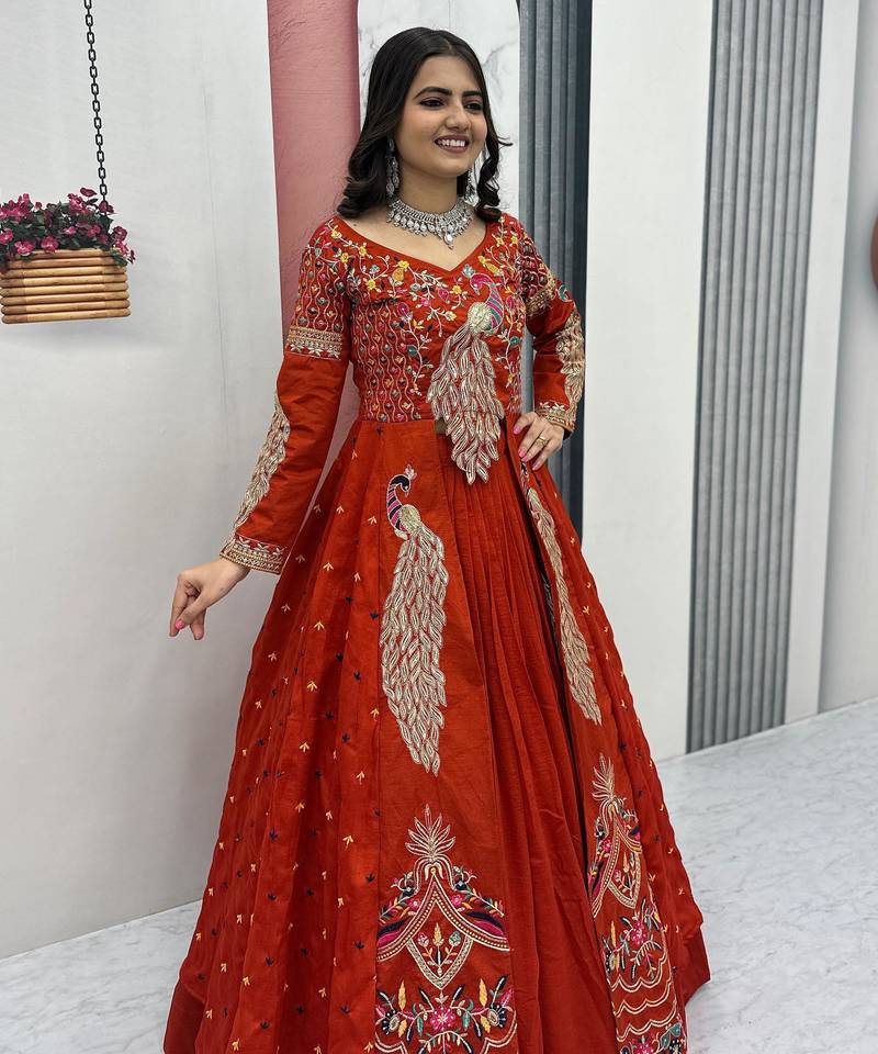 | Product Name | Orange Vichitra Silk Party Wear Embroidery Crop Top With Blouse Lehenga Choli | |