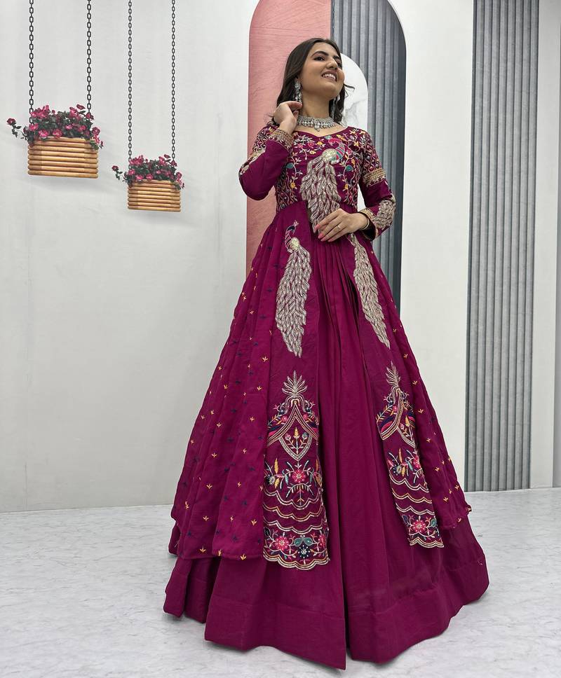 | Product Name | Pink Vichitra Silk Party Wear Embroidery Crop Top With Blouse Lehenga Choli | |