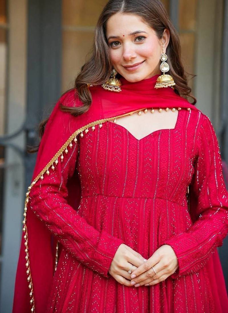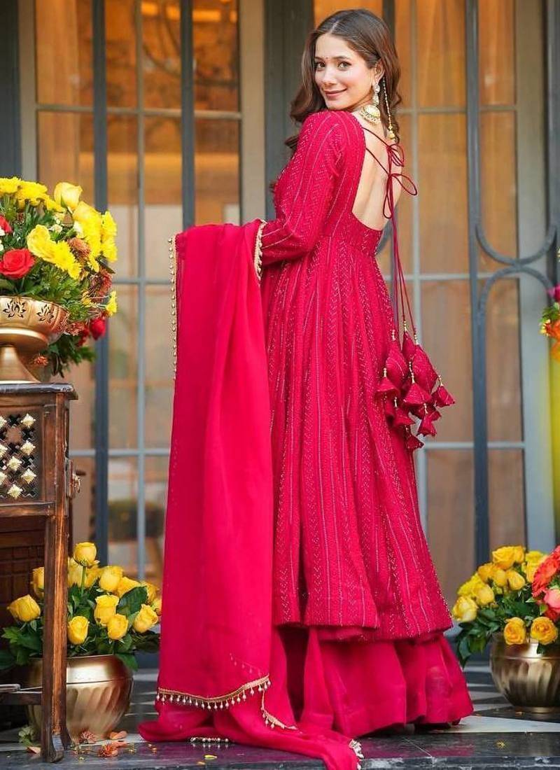 | Product Name | Red Fuax Blooming Party Wear Embroidery Suit Set | |