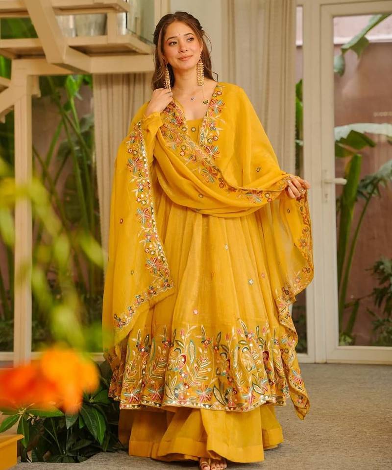 | Product Name | Yellow Crunshy Silk Party Wear Embroidery Sharara Suit Set | |
