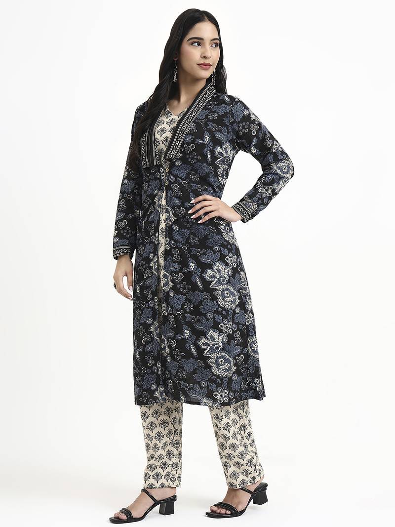 | Product Name | Cream Printed Pure Cotton Straight Black Including Jacket Style Co Ord Set | |