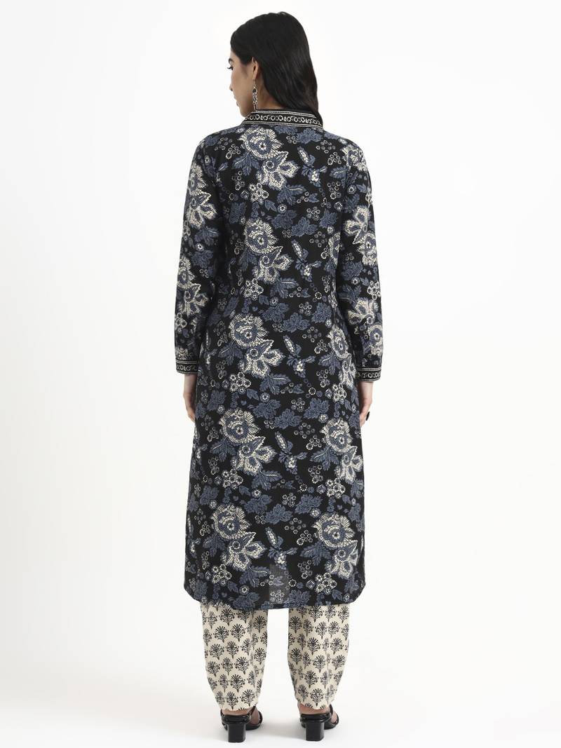 | Product Description | Cream Printed Pure Cotton Straight Tunic Black Including Jacket Style Co Ord Set Design Wide Selection Of Black Floral Kurtas And Coordinating Sets, Including Jacket Style Options A Line Shape Long Sleeve V Neck Calf Length Kurta Straight Him Machine Weave Cotton Trouser Design:Printed Pure Cotton Trouser Elastic Waist Size & Fit Material & Care Pure Cotton Dry Clean |