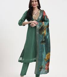 Green chanderi a line dori embroidery kurta set with pant and dupatta