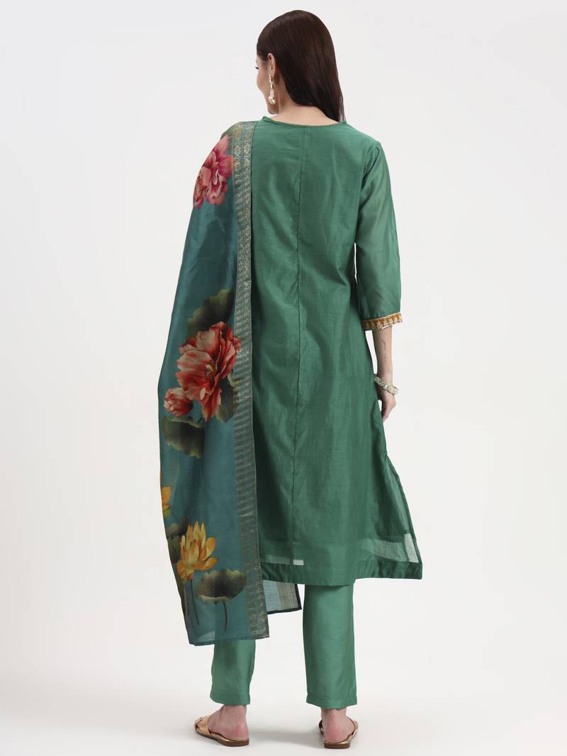 Product Name | Green Chanderi A Line Dori Embroidery Kurta Set With Pant And Dupatta | |