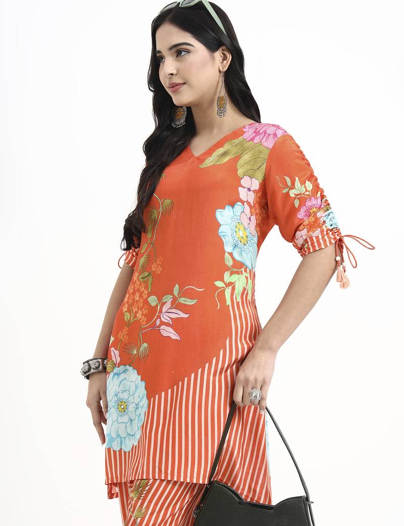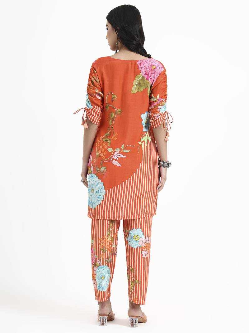 | Product Name | Orange Digtal Print A Line Muslin Co Ord Set | |