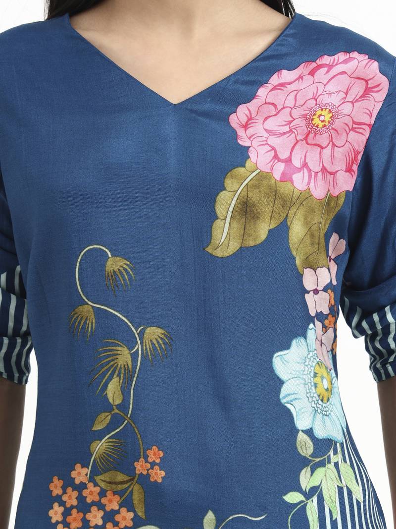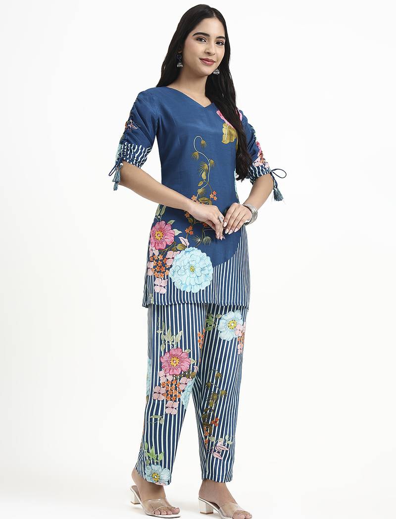 | Product Name | Turquoise Blue Digtal Print A Line Muslin Co Ord Set | |