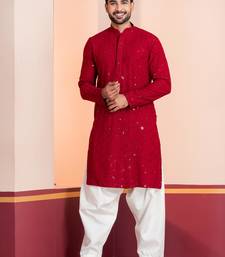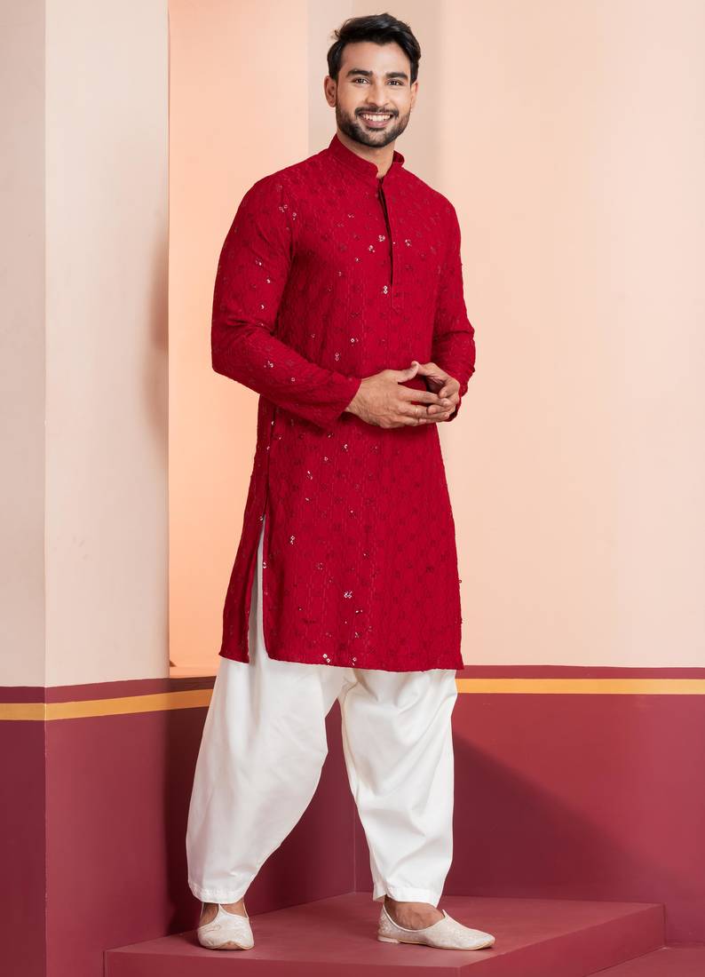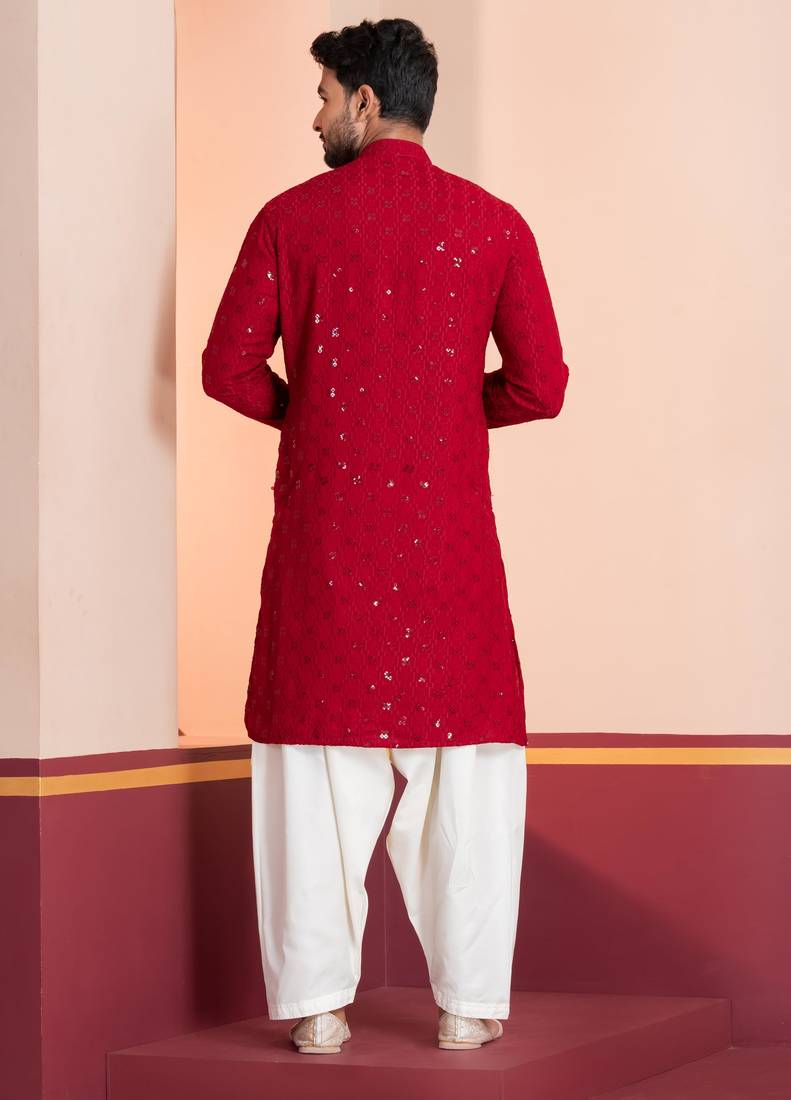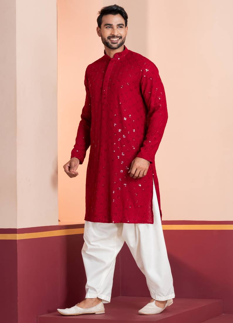 | Product Description | Step Into Timeless Elegance With This Men Red Embroidery Sequence Kurta For Festive, Reception, Weddings, Designed To Bring Out Your Refined Traditional Charm. Crafted From A Premium Sequence Fabric, This Set Ensures All Day Comfort While Maintaining A Crisp, Structured Look. |