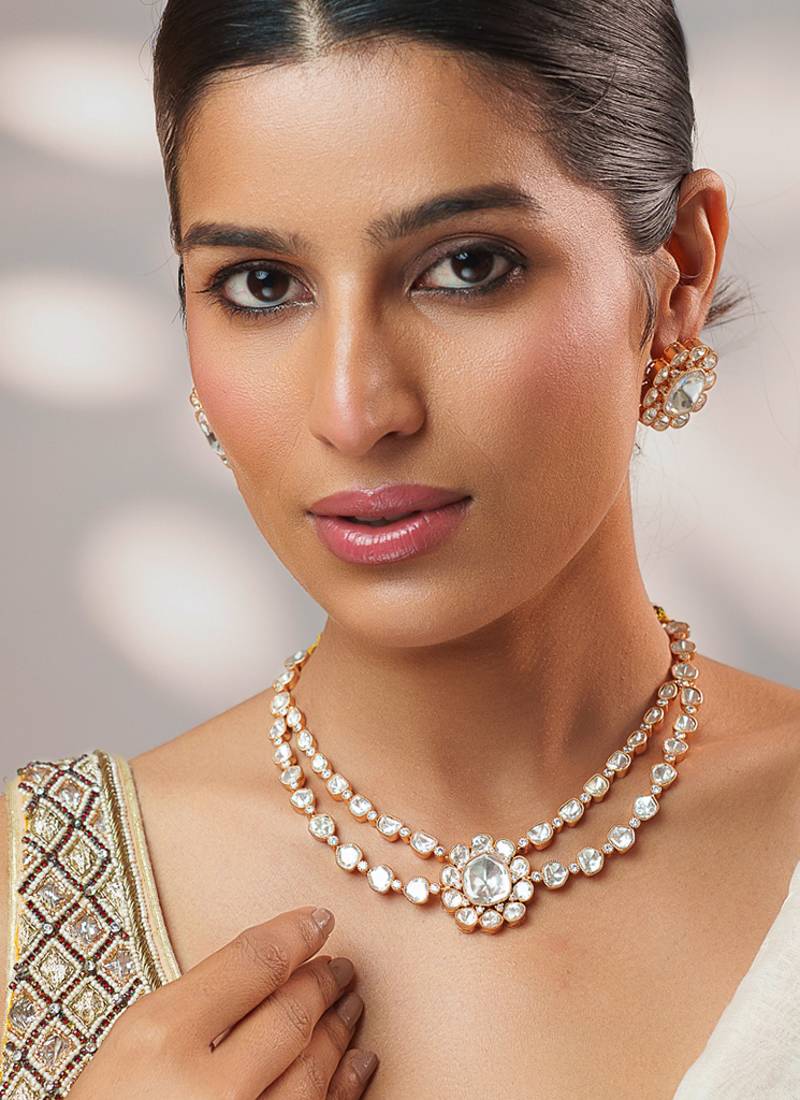 | Product Description | This Gold Plated Kundan Layered Necklace Set Exudes Regal Elegance And Timeless Sophistication. Featuring Multiple Intricately Crafted Layers Adorned With Classic Kundan Stones, It Offers A Luxurious, Statement Appeal. Perfect For Weddings, Festive Occasions, Or Special Celebrations, It Enhances Traditional Ensembles With Grandeur, Refined Craftsmanship, And Enduring Charm.
