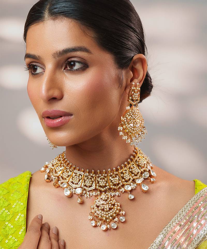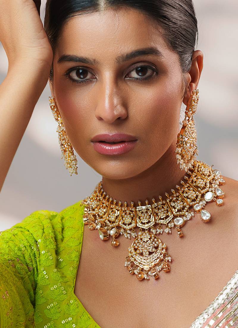 | Product Description | This Gold Plated Kundan Necklace Set Embodies Timeless Elegance And Regal Craftsmanship. Intricately Designed With Classic Kundan Detailing And A Radiant Gold Finish, It Offers A Luxurious Statement Appeal. Perfect For Weddings, Festive Occasions, Or Celebrations, It Beautifully Enhances Traditional Ensembles With Sophistication, Grace, And Enduring Charm.