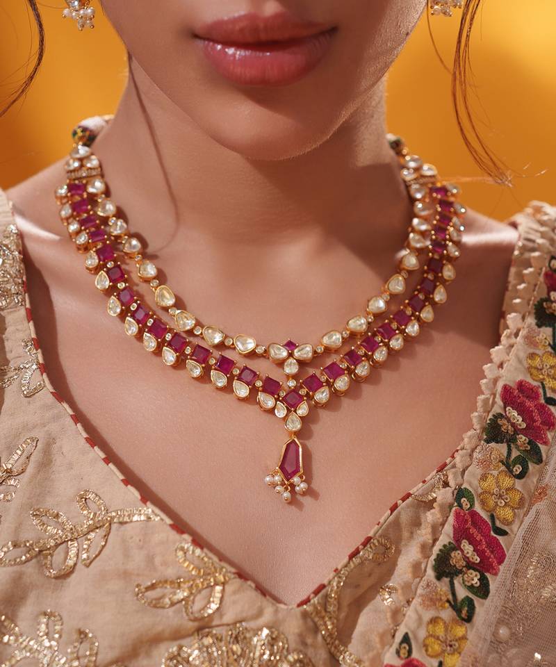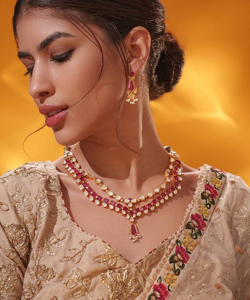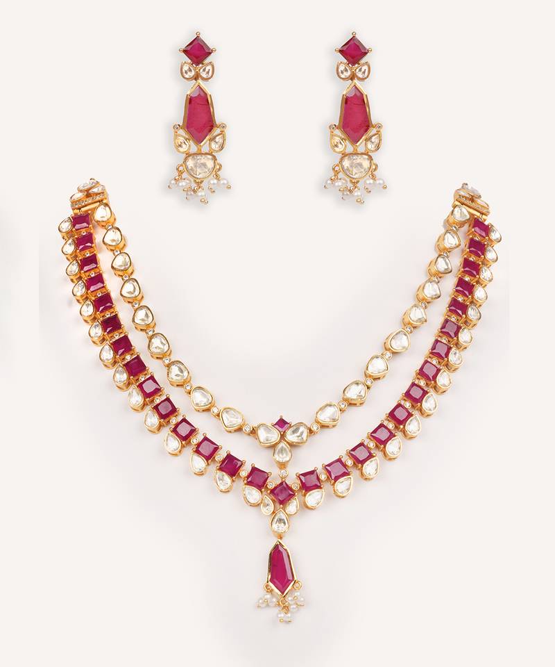 Product Name | Gold Plated Red Stone Kundan Necklace Set | |