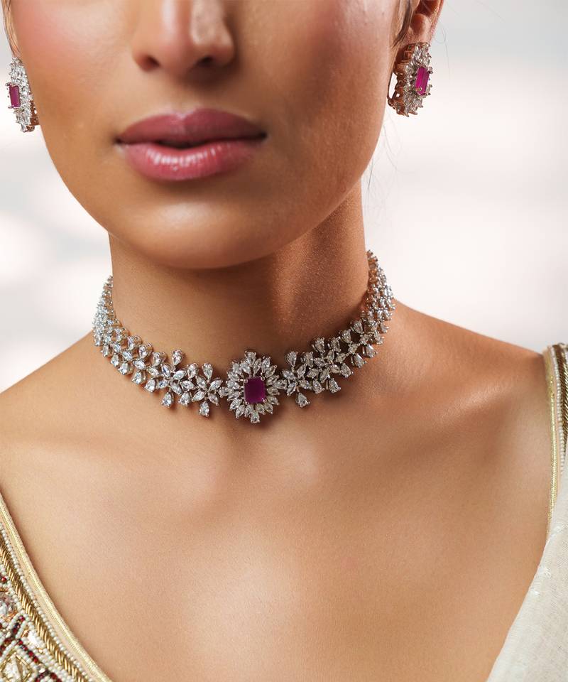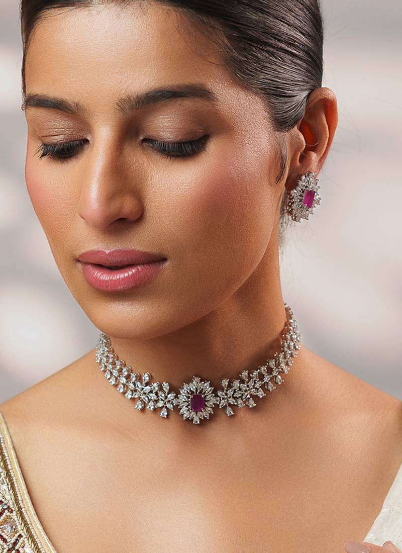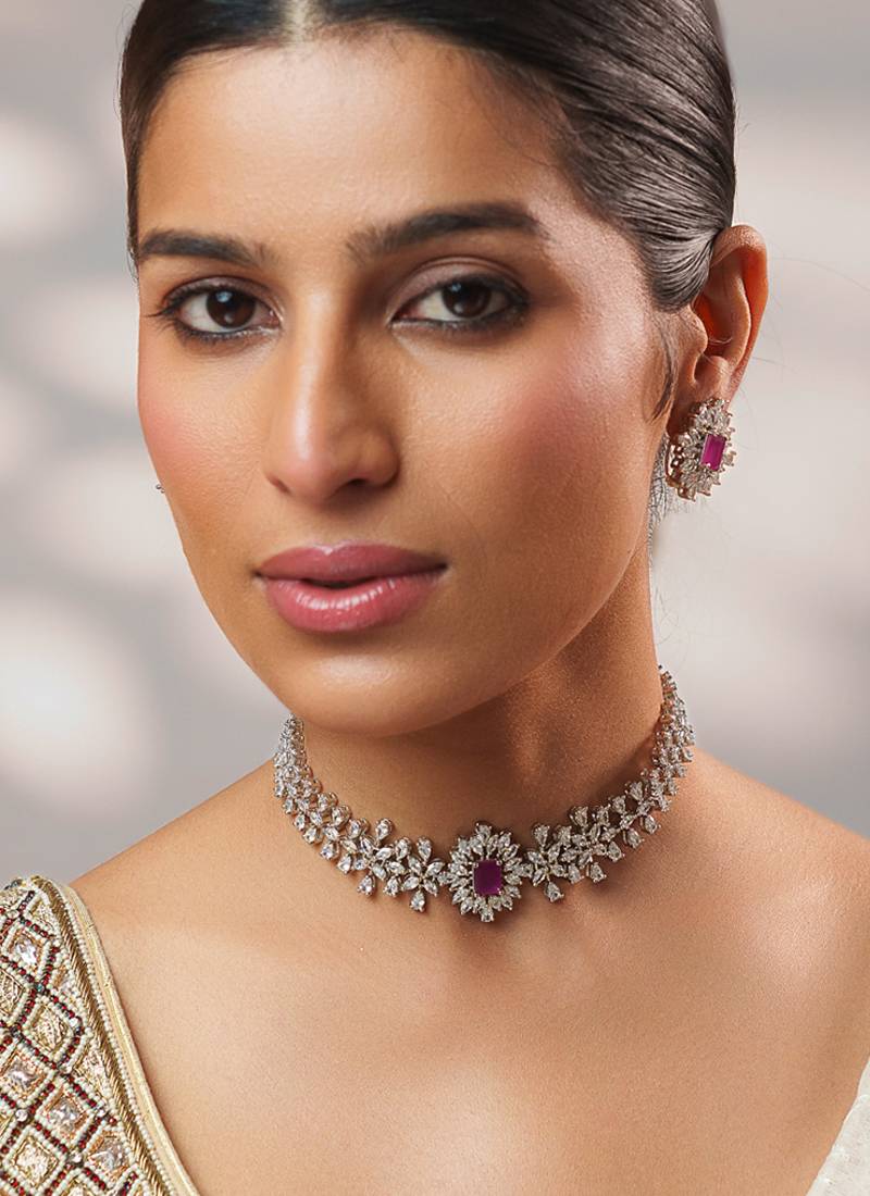 | Product Name | Silver Plated Kundan Pink Stones Choker Necklace Set | |