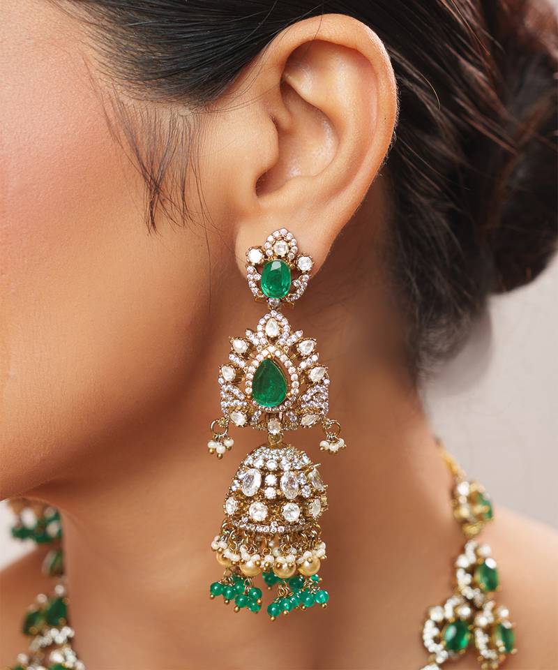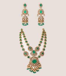 | Product Name | Two Tone Plated Kundan Green Stones Necklace Set | |