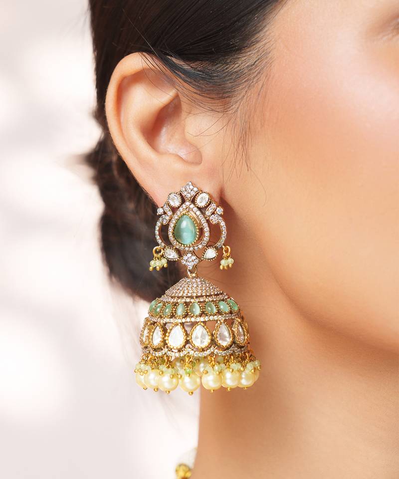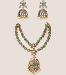 | Product Name | Two Tone Plated Kundan Green Stones Necklace Set | |
