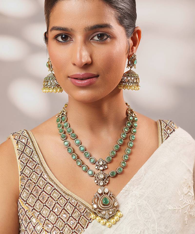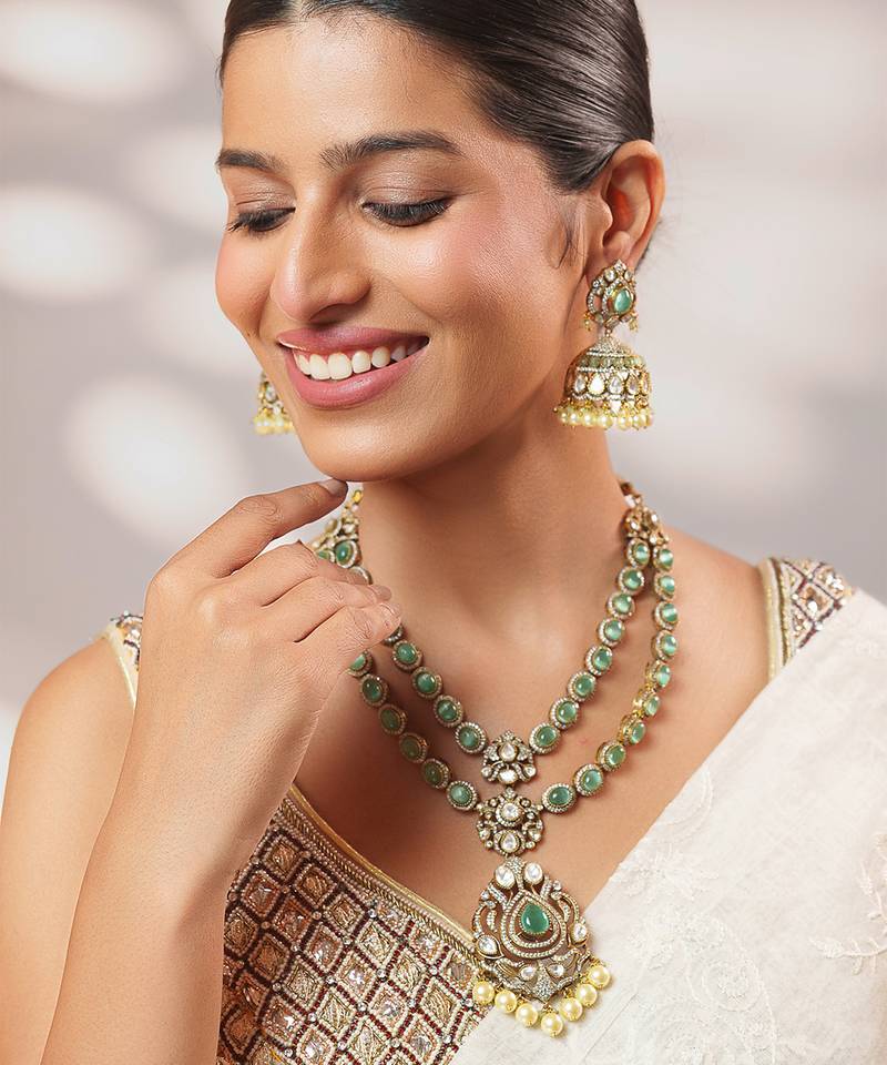 | Product Description | This Two Tone Plated Kundan Green Stone Necklace Set Showcases Timeless Elegance And Traditional Artistry. Featuring Intricately Set Green Stones Complemented By A Refined Dual Tone Finish, It Offers A Regal And Sophisticated Appeal. Perfect For Weddings, Festive Celebrations, Or Special Occasions, It Enhances Ethnic Ensembles With Rich Color, Graceful Charm, And Enduring Sophistication.